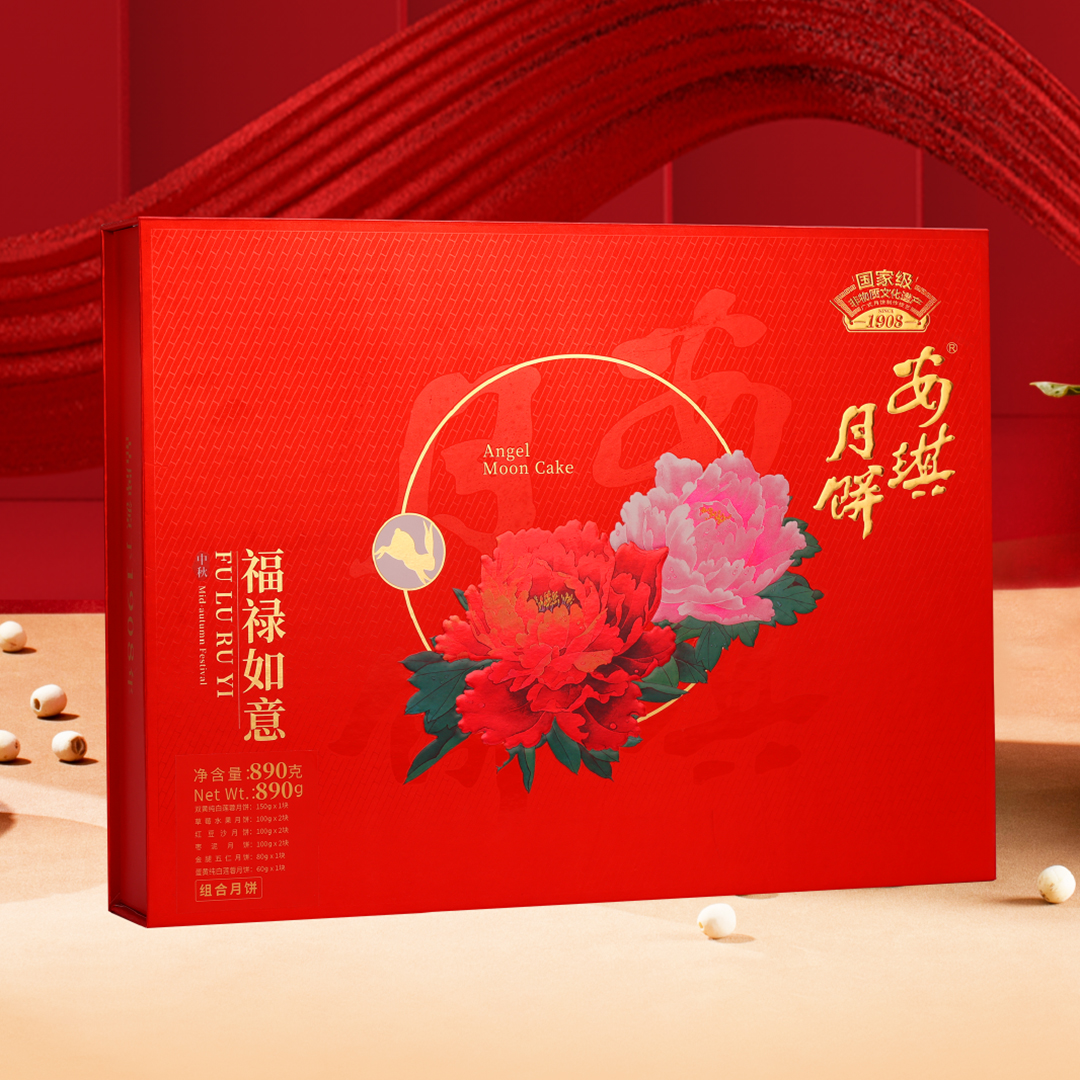 安琪福禄如意月饼安琪福禄如意月饼是安琪公司出品的高档商务送礼月饼礼盒~一盒9只装6个口味:除了有安琪明星产品——双黄纯白莲蓉月饼外,还有以金华火腿、优质五仁制作而成的金腿五仁月饼,金腿五仁月饼有着爽脆口感又富含油香,皮薄馅多、油质适中、绵软带酥,口感**。还有红豆沙、枣泥月饼。外包装以牡丹花及红色为主,内盒风格则以极有质感的金色为底色,给人以福气满满、福禄双收之感。以好意头为基调,福禄如意月饼!送礼很适合,我巨喜欢。口味丰富,包装大方!安琪月饼-深圳老字号品牌-***非物质文化遗产!厂家直销团购电话:0755-22359545